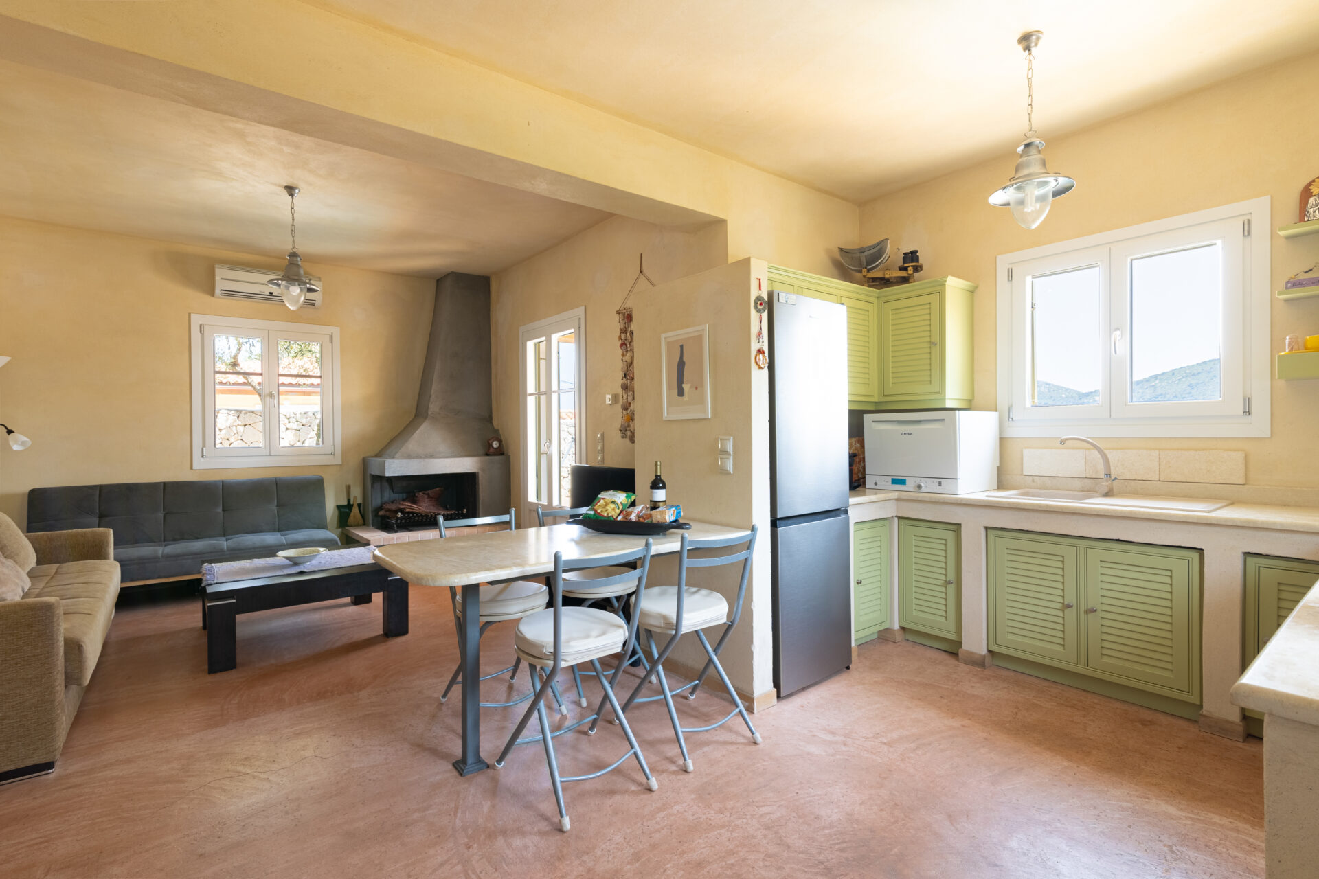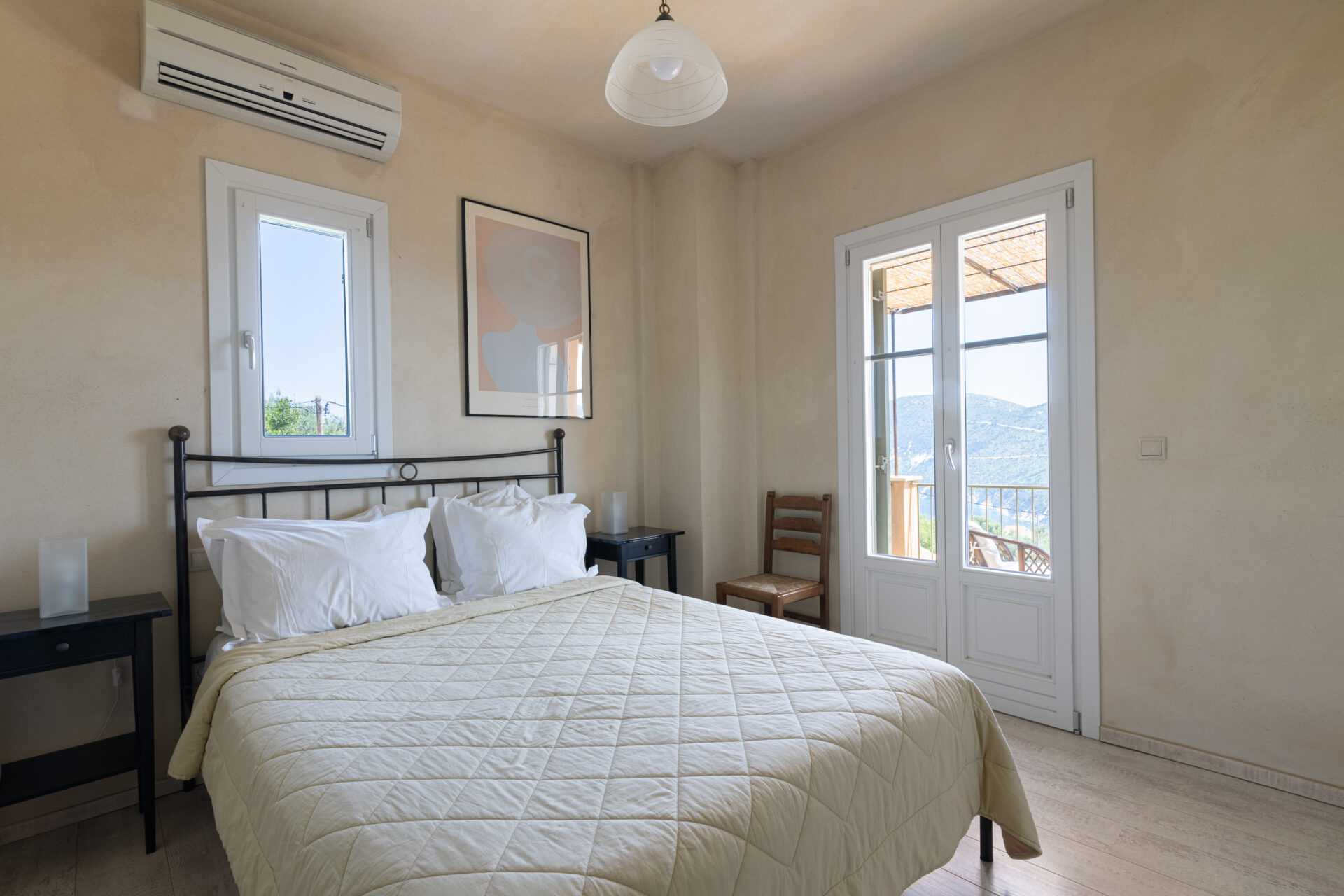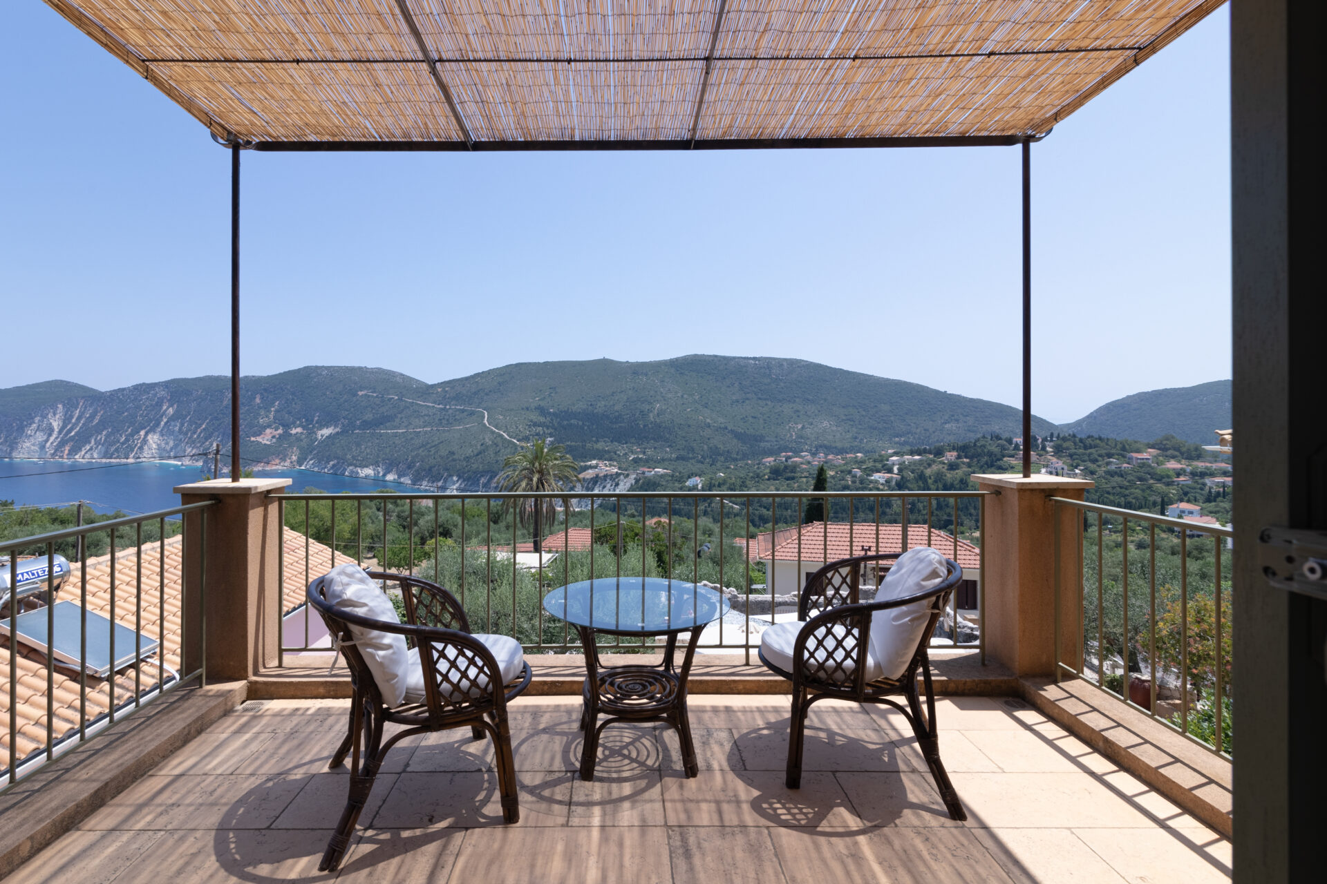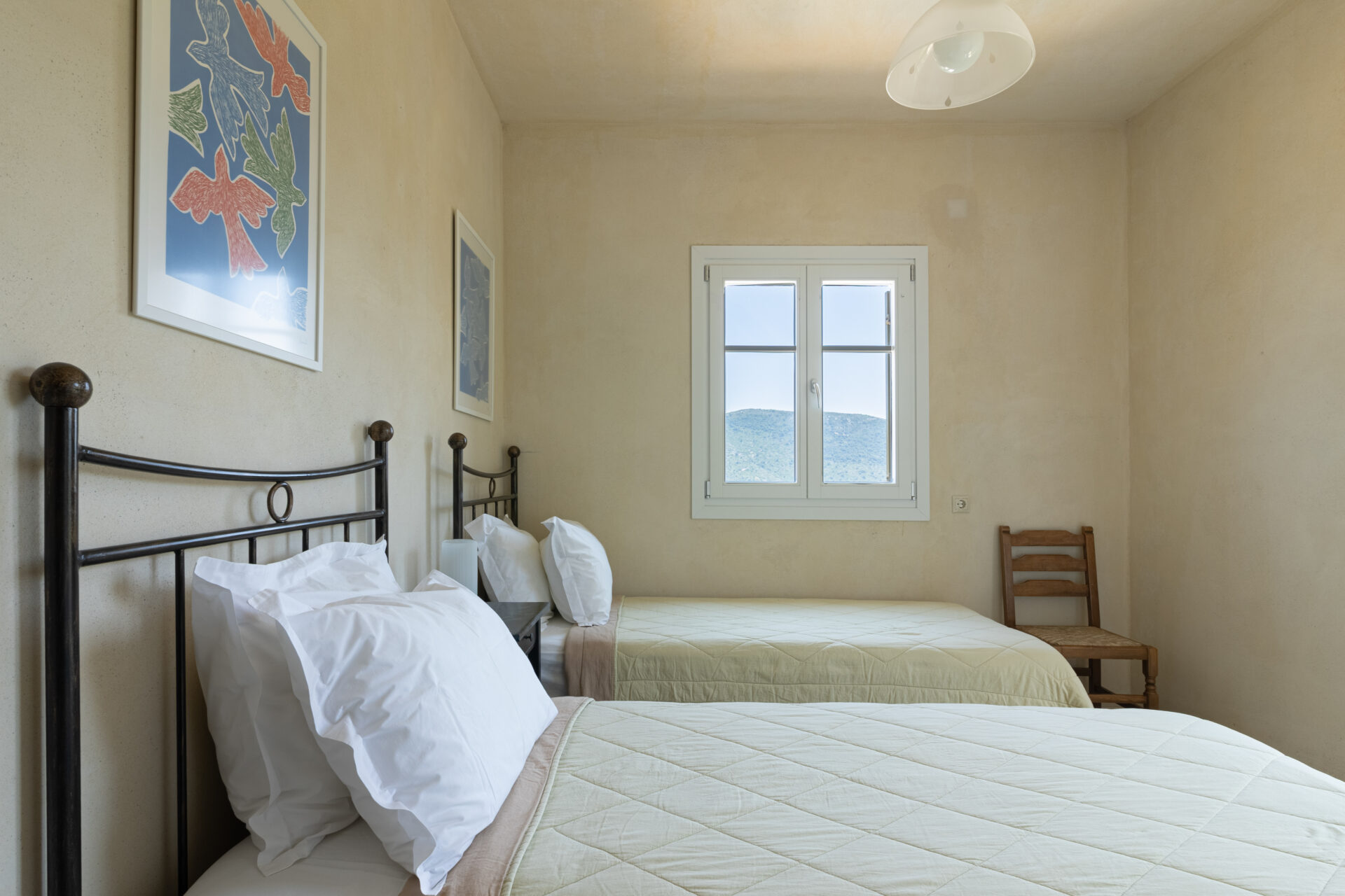 Homer’s View is located in the quaint village of Kolieri at the northern-most part of the island. Afales beach less than a 5-minute drive down the hill while sea-side bays such as Frikes and Kioni, filled with taverns and local shops, are 5-10 minutes away. Stavros village, where one will find groceries, butcher, deli, bakery, cafes, a pharmacy and medical services is less than a 5-minute drive. Well-known in-land restaurants such as Yefuri and Myrtia are accessible by foot.